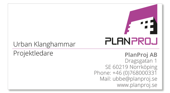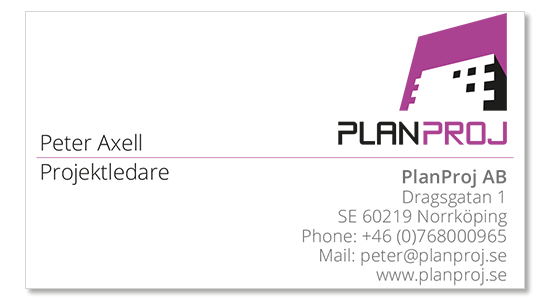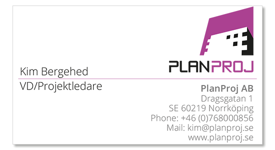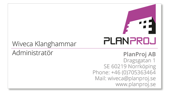 Kontor NorrköpingPlanProj ABDragsgatan 1 602 19 Norrköping Wiveca Klanghammar 070 53 63464 kontakta@planproj.se ![]() |