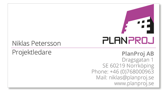 Kontor NorrköpingPlanProj ABDragsgatan 1 602 19 Norrköping Wiveca Klanghammar 070 53 63464 kontakta@planproj.se ![]() |